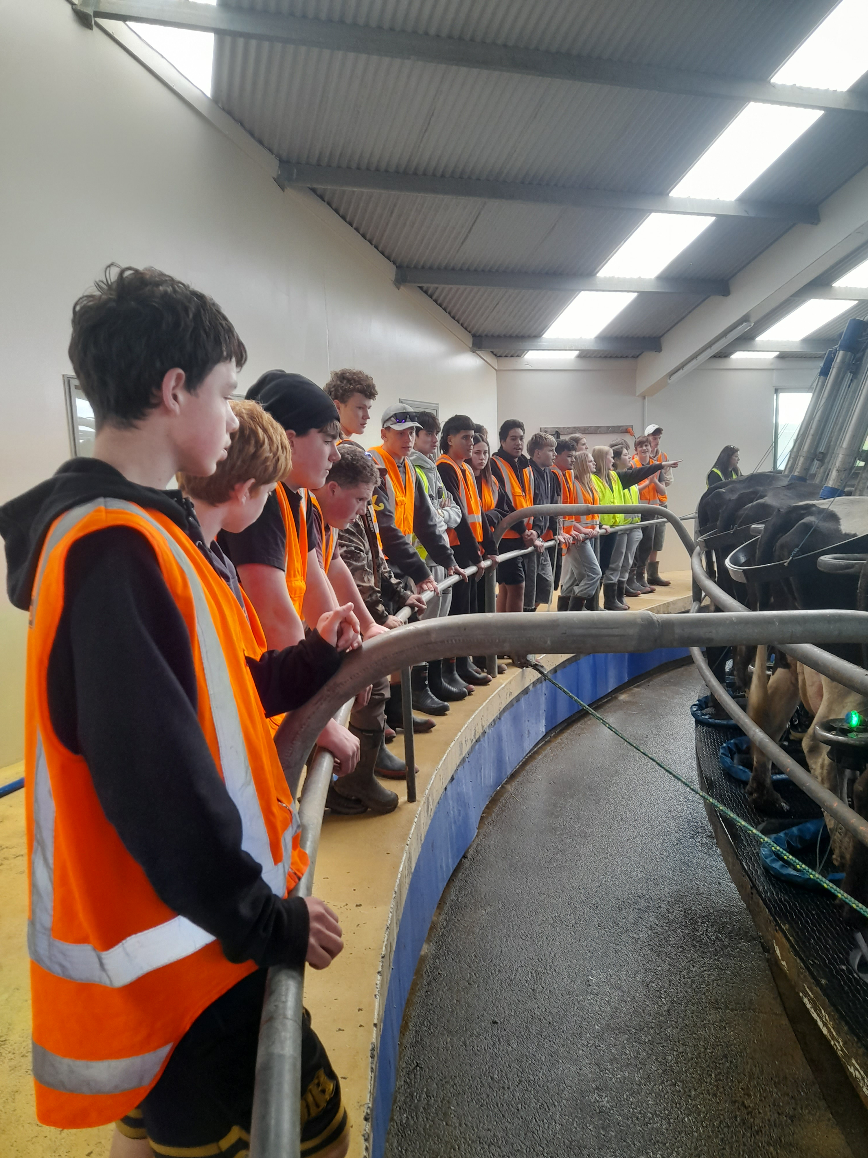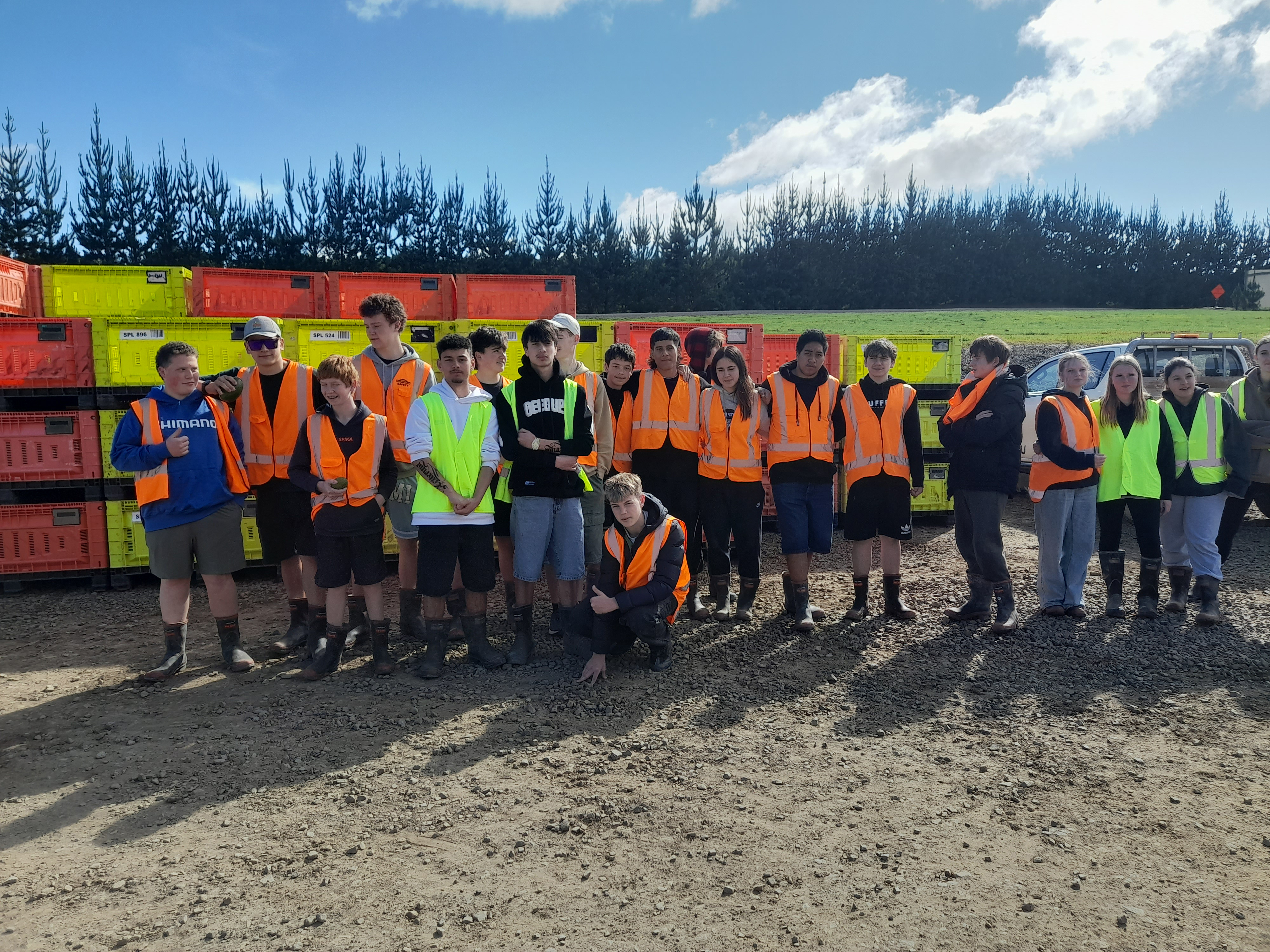 On Thursday 4th of September the Level 1 Primary Industries class left for a two day trip to Kerikeri to visit various primary industries. First up was a visit to a fruit packhouse and coolstore in Waipapa where we learned how kiwifruit and lemons are packed and stored for export. We then visited a lemon and kiwifruit orchard and learned all about the growing and harvesting of kiwifruit and lemons. The final stop for the day was at a large dairy farm close to Okaihau which farmed 1200 cows. We were able to see the large rotary cowshed in action and many of the students were even able to have a go at putting the cups on. One of the highlights of the day was seeing and interacting with the newborn calves. That night we stayed in Paihia at the Bay of Islands Holiday Park. The next morning we headed to Pāmu farms (Landcorp) where we saw a large avocado orchard and tasted some freshly harvested blueberries (a highlight for many) and a beef farm where they explained the use of the Halter virtual fencing technology. We then headed back to OHS after an enjoyable couple of days.