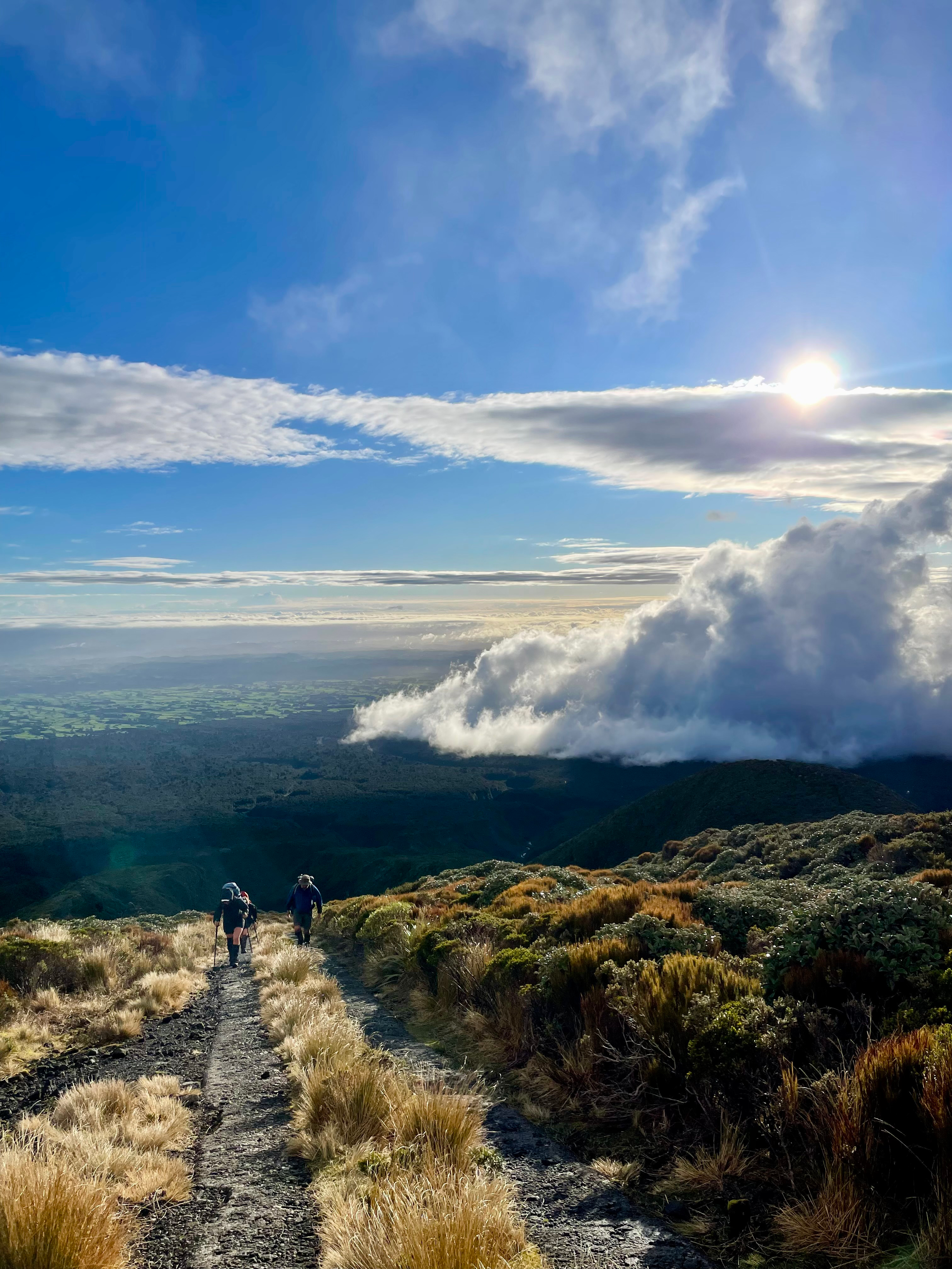 Monday saw the group tramping in very strong winds past the famous reflective tarn, Maude Peak and up over Henry Peak (1224m) to the North Egmont visitor centre for lunch.