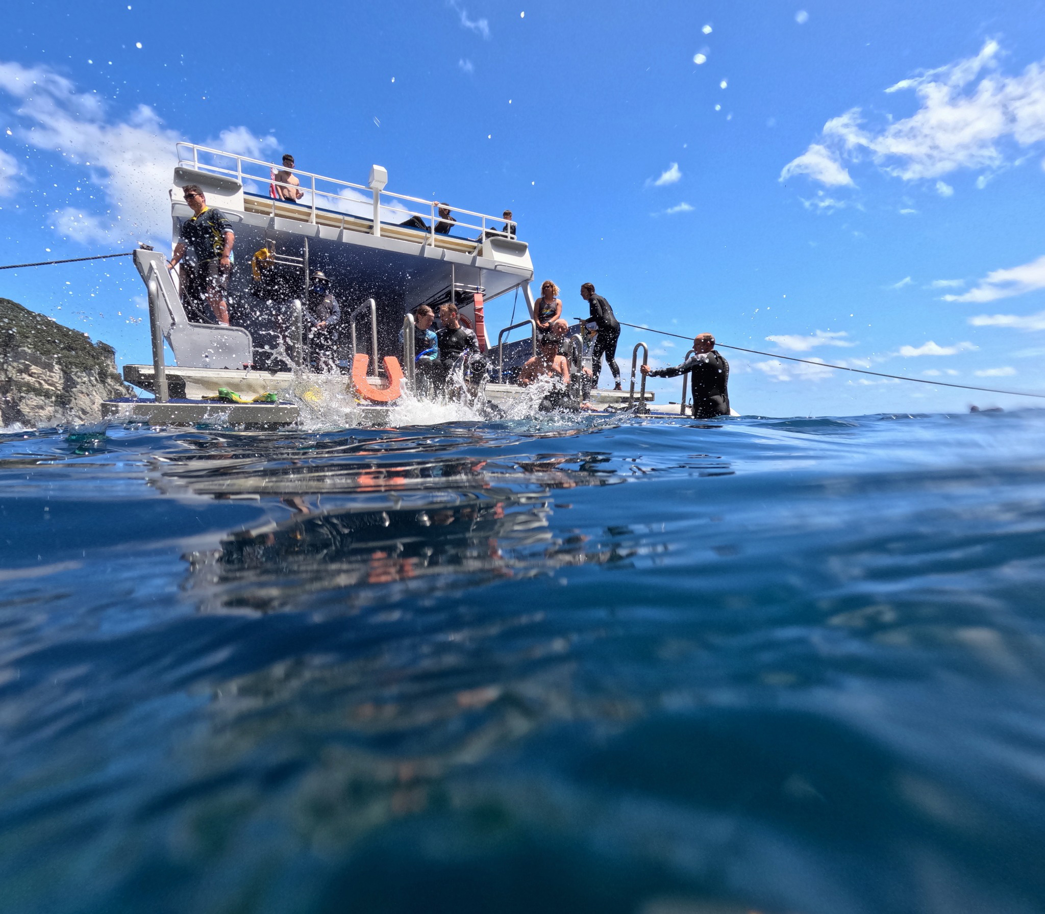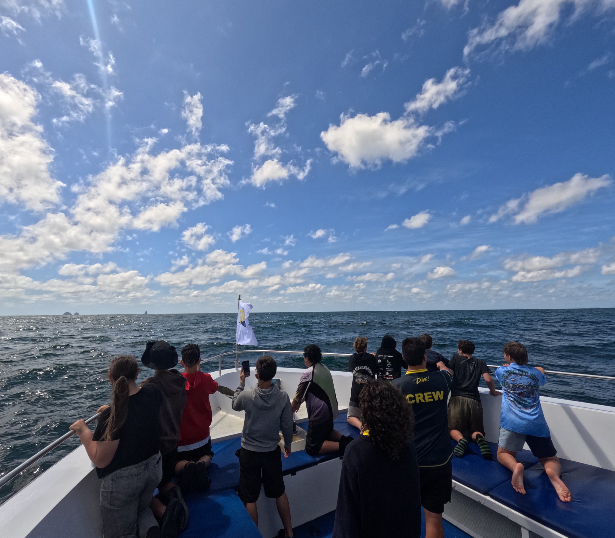 On a beautiful Monday 3rd of November the Alt Ed class and Mr Troost’s trapping class went to Tutukaka to take Dive Tutukaka’s Perfect Day cruise to the Poor Knights. On setting off the captain told us to keep our eyes open for whales…. ‘Yeah right!’ we all thought. To our amazement within 20 minutes we spotted 2 minke whales and spent 15 or so minutes following them at a respectful distance. We were lucky enough to also see them on the return journey.