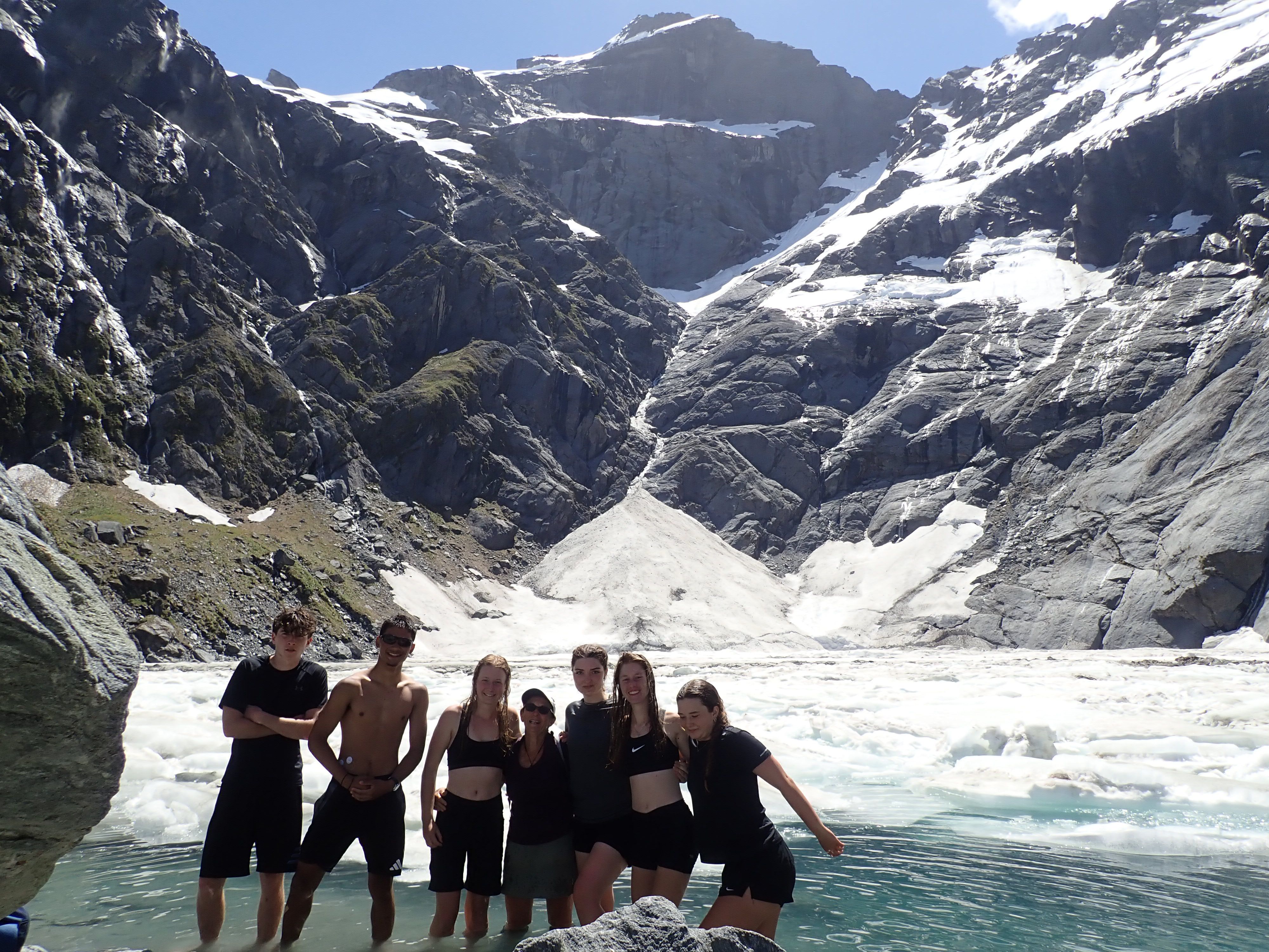 Wednesday 10th: This saw the group take daypacks to hike to Lake Castalia,Lucidus, Diana and the disappearing tarn. We saw and heard avalanches high up in the glacial mountains of the valley. Several brave people swam in the chilly, glacial blue waters of Lake Castalia. We had an adventurous "off track": experience on the return to the hut...an unforgettable, amazing day!